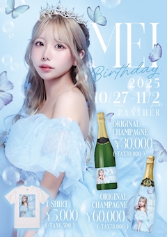 こんにちは✨ 🐈⬛Pantherです🐈⬛ 🐈⬛本日はメイさんバースデー最終日✨ 🐈⬛ メイさんの可愛らしいドレス姿は本日までとなります🥰 🐈⬛皆さまぜひぜひお越しくださいませ❣️ 🐈⬛ MEI BIRTHDAY EVENT 10/27(木)〜11/2(日) この度メイさんの バースデーイベント開催致します🐾 メイさんのバースデーイベント🎂🍾 ドレス姿でお迎え致します👗 ❣️ ◉イベント限定◉ 🥂オリジナルシャンパン🥂 ¥30,000(税・サ別) ¥60,000(税・サ別) 2種類ご用意致します❣️ 皆様のご来店スタッフ一同お待ちしております🐾 ※ご不明な点がございましたら お気軽にスタッフまでお尋ね下さい。 🐈⬛ 最後まで読んでくれて ありがとうにゃん🐈⬛