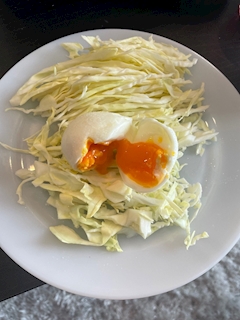20時から出勤してます✨️ 昨日急遽ふりふりエプロン買って 昨日届いた!! 耐えー‼️ 可愛いので見に来てくださいꜝ❤︎⬞♪ 今日のお昼は餌みたいなご飯食べました^^ 今日はこの草とラザニアふたくち!! ゆで卵は超半熟が好きなんだけど 結構上手くできた🤍 未だにたまに失敗する時あるから いつも割る時どきどきするの! 余ったたまごは味たまにしました\(^_^)/