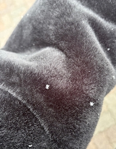この前雪降ってた時上着に雪の結晶みたいなのあったから信号待ちしてる時急いで撮ったけど全然わかんないやつ 雪嬉しい雪積もってほしい