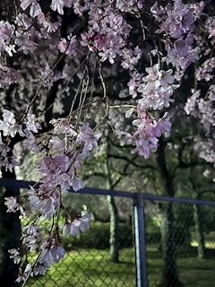 Pantherの りお です💜 散っちゃう前に桜を見に行きましたしかも夜桜🌸❗️ 仕事終わりに行ったんだけど結構人多くてびっくり😳 屋台でベビーカステラ買って食べながら楽しんだ✌️ いっぱい咲いてる時に見れて良かった〜!!