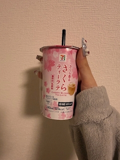 こんばんは^ᴗ.ᴗ^♡ ななせ です さくらの食べ物とか飲み物がすきすぎて見かける度に買うんだけどこれセブンに売ってて買った ティーラテもすきなななせにとって最強すぎた めっちゃおいしかったおすすめ 最後まで見てくれてありがとう♡