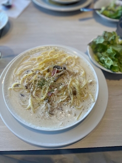 こんにちは✨️Pantherのななです🎀❕ ランチでパスタ食べたよ🍴💕パスタ大好きだからよく作るんだけど、やっぱりお店で食べるやつは最強に美味しい、、🥹ラシックにできた所行ったんだけど、スープパスタみたいですごく美味しかった!!!🤍 出勤前だからニンニク系は我慢した🥹でもほぼニンニク使われてたから、次は何も無い時に匂い気にせず食べに行きたい💭私はきのこのクリームパスタ食べたよ!!♡ ランチだったから食後にシャーベットもついてきて幸せだったしペロリすぎた🥹またすぐにでも行きたい🤍 今日います🐱🖤
