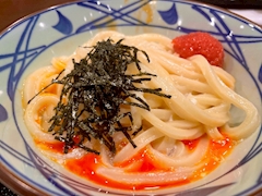 こんにちはpantherのはるだよん🐈⬛ 久しぶりに丸亀製麺行ったんだけどさいきんめんたい釜玉美味しいよってきいたのおもいだしてたべてみた めちゃうまびっくりはるからいのにがてだけど美味しく食べれました! 締めでご飯入れると美味しいらしいけどそんなに食べられないのでまた今度♡