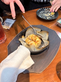 たしか、 これはめんたいやきじゃがぽてとだったきがする...... 新しい食感で ほっかほかで めんたいこが最高でした♪ みんなでシェアするのがだあいすき おいしそうでしょ😋✨