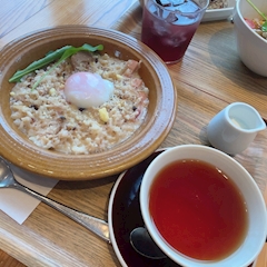 Pantherの りお です💜 この前おでかけした時に食べたご飯 めちゃおいしかったの✨️りおドリアとかリゾット系すきで特に温泉卵のってるやつだいすきദ്ദി^ᴗ ̫ ᴗ^₎ 寒かったから体温まったし意外と紅茶との相性もよかった! また食べたいᐡ ̳ᴗ ̫ ᴗ ̳ᐡ