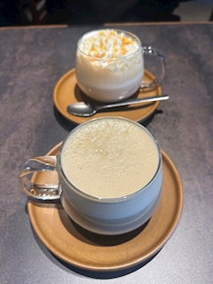 こんにちは!Pantherのあむです꒰^ ̳> ·̫ < ̳^꒱♡ 前のブログに引き続き美味しかった飲み物 はい! なんか食器?からしえオシャレじゃない?かわいい! 私は大好きなほうじ茶ラテにしたよー! 美味しかったなー なかなかオシャレなカフェでお茶することないからなんか優雅で幸せでした〜(*˘︶˘*).。.:*♡ 楽しかった🎀🎶 最後まで読んでくれてありがとう!