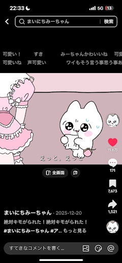 こんにちは꒰^ ̳> ·̫ < ̳^꒱♡Pantherのあむです! 最近ハマっていることがあって それがこれをみること! まいにちみーちゃん っていうショートアニメみたいな? ちいかわみたいな感じの動画で なんか可愛くてクスって笑えるような内容で見てて楽しい! 語尾にね でち っていうのがなんとも可愛くて動画探しては見続けてた! よかったらみてみてね! 最後まで読んでくれてありがとうございます!