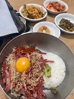 みうです 韓国2日目夜! おすすめされた ユッケビビンバ食べてきたよー お腹壊しませんように☺️