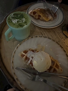 こんにちは✨️Pantherのななです🎀❕ だいすきなカフェ行ってきたよ〜!!🤍今まで食べたクロッフルの中でいちばん美味しくて、ほんとにだいすきな味!!!世界でいちばん美味しいと思う🫶 ここの抹茶ラテ初めて飲んだけど美味しかった🥹アイスが好きだけど、ホットだとアートで出てくるからテンション上がる💭💭お砂糖はちゃんと2袋いれた(T_T) カフェ巡りハマりすぎてる🤍