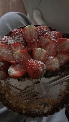 チョコいちごタルト作ったー 写真撮り忘れて食べ途中うまうま あみです! 今週もおつかれさまです!