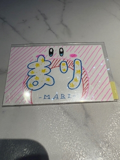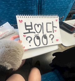 こんにちは✨️ Pantherのななです🎀❕ ボード作ってなかったらしくて新幹線で必死に書いてた!笑色ペンもなくてティントでハート書いたよ😭 準備いろいろ大変そうだけどワタワタしてて楽しそうでした笑🤍 歩きすぎて足痛い😭😭