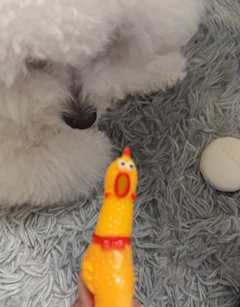 こんにちわぁ✨ Pantherのめいです🐈⬛ この前営業おわりにドンキいったらちっちゃいサイズのチキンうってて🥹 すいちゃんのおもちゃにしたくて探してたからやばーーーい‼️ってなってすぐ買った👶🏻 でめっちゃ気に行って一日ガジガジした結果 頭なくなって爆笑 1日もない命でした😭 また新しいおもちゃ探さなきゃ🧸