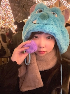やほやほ〜 🚄のぞみんだよん🚄 今日7時に家着きました😊車でディズニー行って、ヘトヘトです✋ 運転してくれたお友達に感謝です。 サリーにした🩵暖かいからこの季節は被り物おすすめ