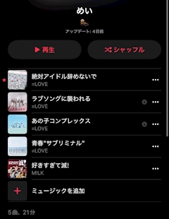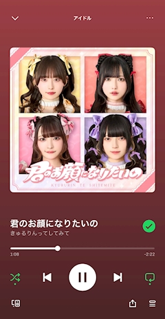 ゆう アイドルが だーいすきで♡ アイドル専用の プレイリストにはね 17時間分も 曲が 入ってるの😹 ちなみに さっきまで 聞いてた曲は これ! きゅるりんってしてみての 「君のお顔になりたいの」