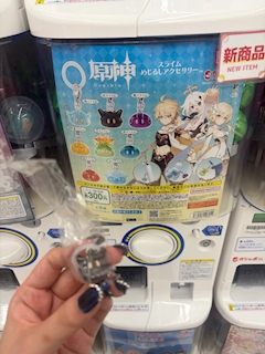こんばんはあ Pantherのゆあです✊🏻🎀 この前原神のガチャガチャ見つけたから回した!! 目印キーホルダー!! ずっと探しててやっと見つけれた🥹 結構何が出ても良かったから回したのは1回だけです 岩スライムが出た笑笑 可愛いー!どこに付けようかな🤔