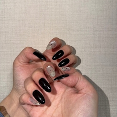 こんにちは😊 オトです🐈⬛✨ ネイル変えてきたよー✨️ めちゃめちゃシンプル!! ドット可愛くて良き✨