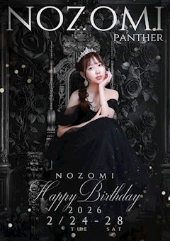 こんにちは✨ 🐈⬛Pantherです🐈⬛ 🐈⬛名古屋は雨がポツポツと☂️… 🐈⬛湿度が上がって暖かく感じる場面もありますが雨続きは移動が大変ですにゃ🙀 🐈⬛さあ❣️ 🐈⬛いよいよノゾミさんの卒業&バースデーイベント開催中ですにゃ✨ 🐈⬛ノゾミさんのラスト皆さまぜひぜひ見に来てくださいにゃん😻 NOZOMI BIRTHDAY EVENT 2/24(火)〜2/28(土) この度ノゾミさんの バースデーイベント開催致します🐾 ノゾミさんのバースデーイベント🎂🍾 ドレス姿でお迎え致します👗 ❣️ ◉イベント限定◉ オリジナルシャンパン ¥30,000(¥39,000) オリジナルシャンパンフルラベル ¥60,000(¥78,000) オリジナルTシャツ ¥5,000(¥6,500) ご用意致します❣️ 皆様のご来店スタッフ一同お待ちしております🐾 ※ご不明な点がございましたらお気軽にスタッフまでお尋ね下さい。 🐈⬛ 最後まで読んでくれてありがとうにゃん🐈⬛