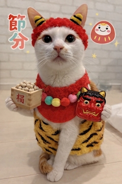 かなめです🐰🤍 今日は節分っていうことで うちの猫さんをチャッピーに 節分っぽくしてもらったよ👹 手がありすぎて笑う(笑) パンサーお休みもらってます👶🏻
