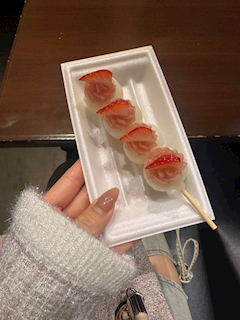 こんにちは✨️Pantherのななです🎀❕ だいぶ前に桜を見に犬山行ったよ〜!!💕桜よりもご飯だからたくさん食べ歩きした🥹🤍城下町はお店閉まるの早いから、お昼くらいに行くのがおすすめ!! いつも食べるお団子🍡普通のお団子と違って、硬めだけどめちゃくちゃモチモチしててだいすきなの!!種類もたくさんあって可愛い!!💕映え!!💕今回はいちごにしたよ〜!🍓 お家でお団子作ると柔らかくなっちゃうから硬めのモチモチ難しい(T_T)美味しいお団子の作り方教えてくださいっ 🍡🤍