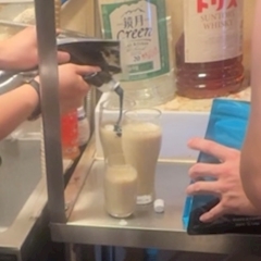 深夜にれんくんとしんすけさんに よくわかんない飲み物をいっきさせられました😮 飲めないことはない。 材料は豆乳と黒ごまとあとなにか!笑 健康にはいいものだった🙆♀️