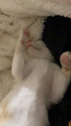 かなめです🐰🤍 うちの猫様がお家に来たばっかりの写真定期的に見ておっきくなったなあって親心💭 この写真は布団の中でヘソ天して爆睡中👶🏻可愛すぎる🥺🫶🏻