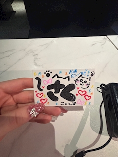 こんにちは 昨日のお礼ブログです💌 同伴からありがとうー! 初とりぶら! 青菜炒めお気に入り確定!! ゆっくりご飯も行けて そのまま3セットもいてくれて 本当にありがとう🥺 いっぱい お話もカラオケも できて楽しかったよー!! 時間あっという間だった! 🐈⬛ 急遽来てくれた! 夜遅いのにありがとう!! みゆちゃんのTシャツもありがとう 今日届いたの!って言ったら いいよー!って びっくりしたし うれしすぎた! 大事にするね!! 月曜日からありがとうございました🙇♀️