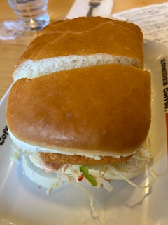 みゆですт т コメダで課題してちょっとなんか食べようとおもったら えびかつぱんでかすぎてやばいWWW たべきれなくてもちかえり