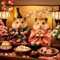 こんにちわ けいです⑅︎◡̈︎* 忘れてた… 今日がお雛様だってこと🎎 大好きなハムスターで 画像を作ってみました🐹 可愛い🩷 毎年おばあちゃんが こんな感じのおかしを 作ってくれてたのを 思い出した😊 食べたくなってきたから スーパーで買って来ようかな🛒 それでわ!