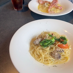 Pantherの りお です💜 そういえばまたまたパスタ食べたんです😚だいすきすぎる 昨日あげたブログの岩盤浴行った時にお昼に食べたの✨️ 今回はボンゴレビアンコ! またアサリかーい!てね😂 海鮮もだいすきなの🤤 夜のメニューが豊富だったからまた遅い時間にも食べたいなあ✌️
